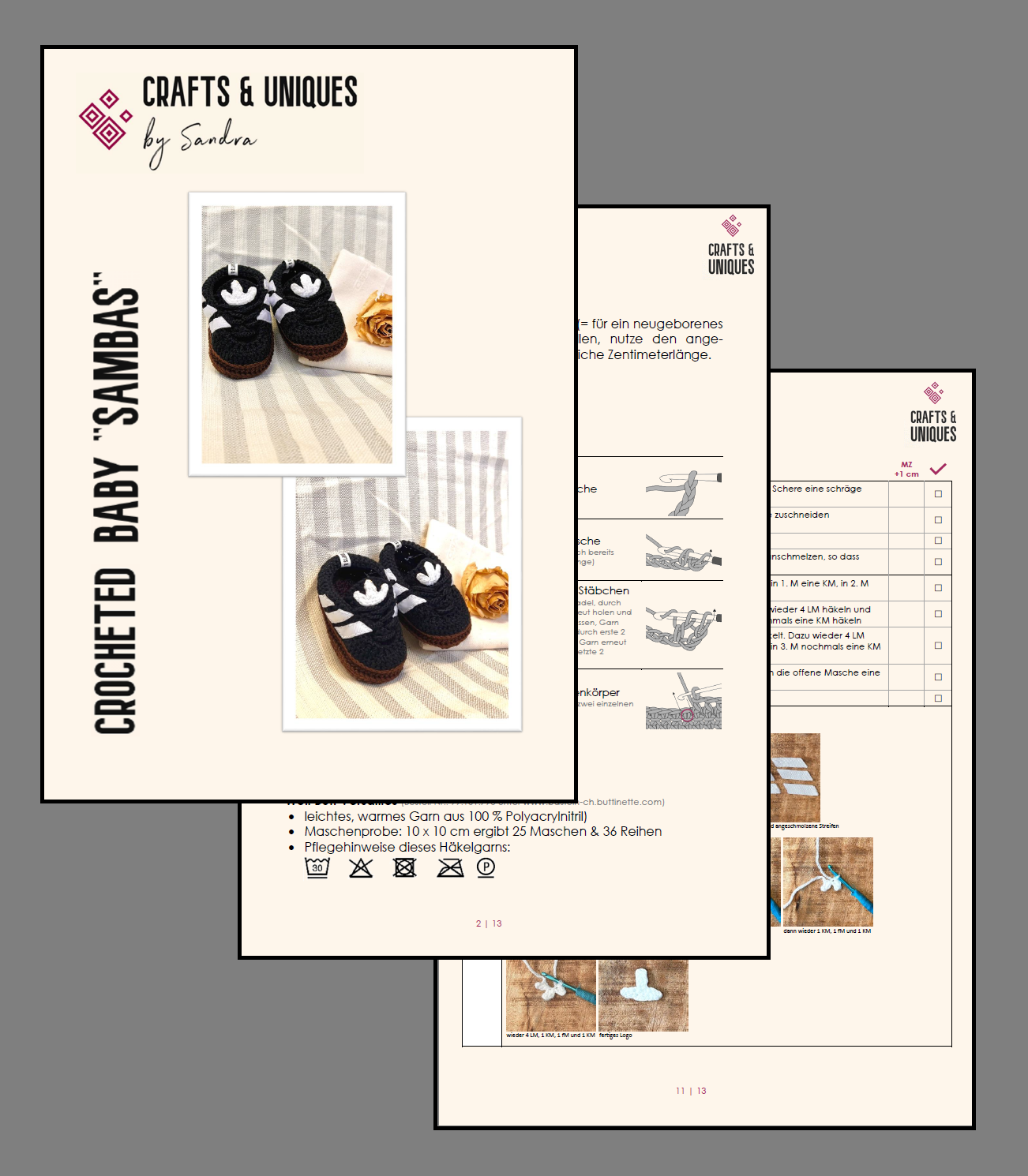 Tauche ein in die wunderbare Welt des Häkelns und zaubere dir deine eigenen Baby Sambas Schühchen. Meine umfassende DIY-Häkelanleitung im PDF-Format (13 Seiten) ermöglicht es dir, diese bezaubernden Schuhe selbst herzustellen. Perfekt für passionierte Häkelfreunde, die Freude am Selbermachen haben.
